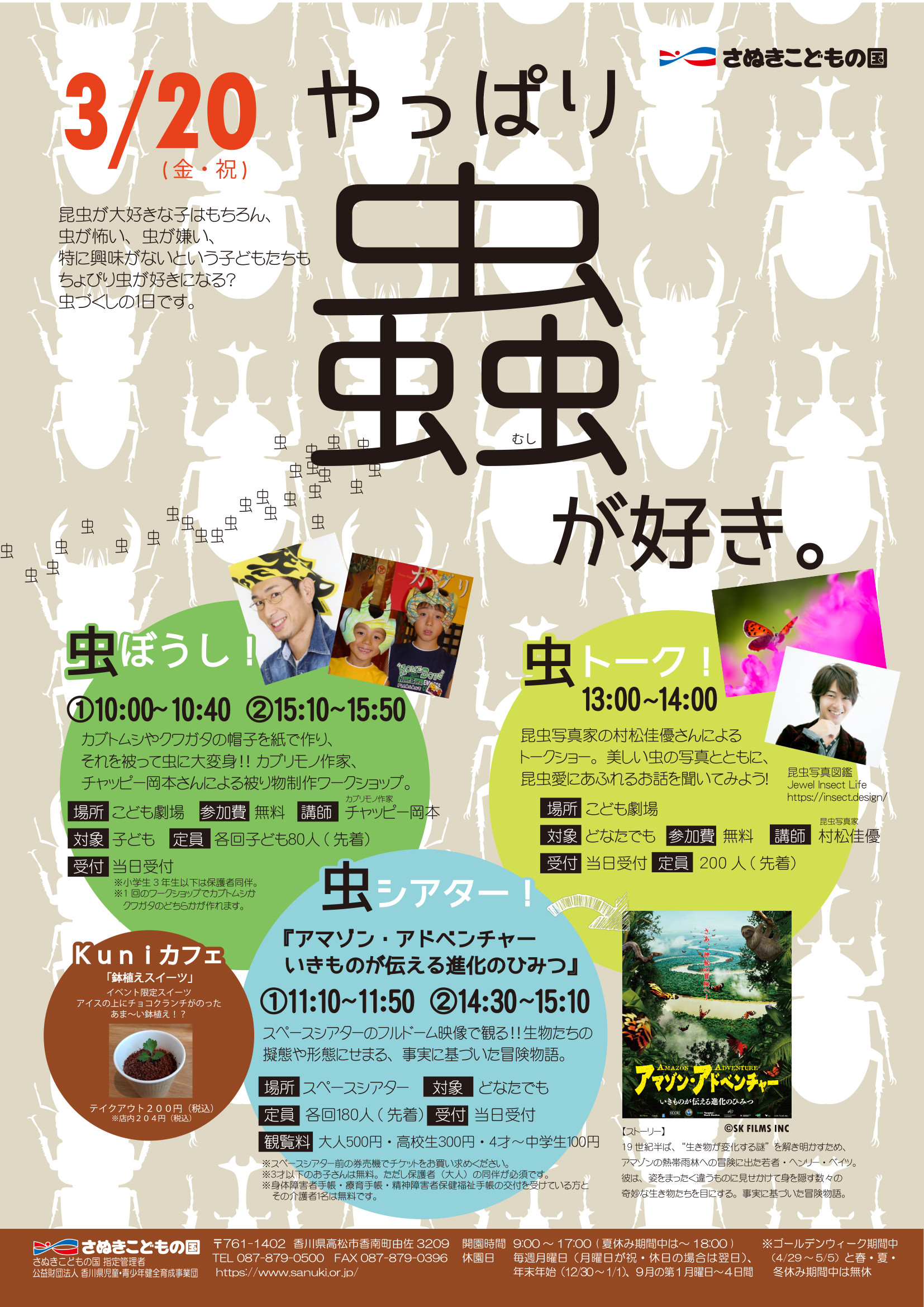 3/20に香川県のさぬきこどもの国で開催予定していました特別企画「やっぱり虫が好き。」は、